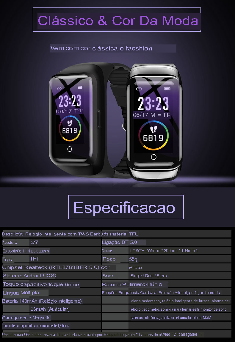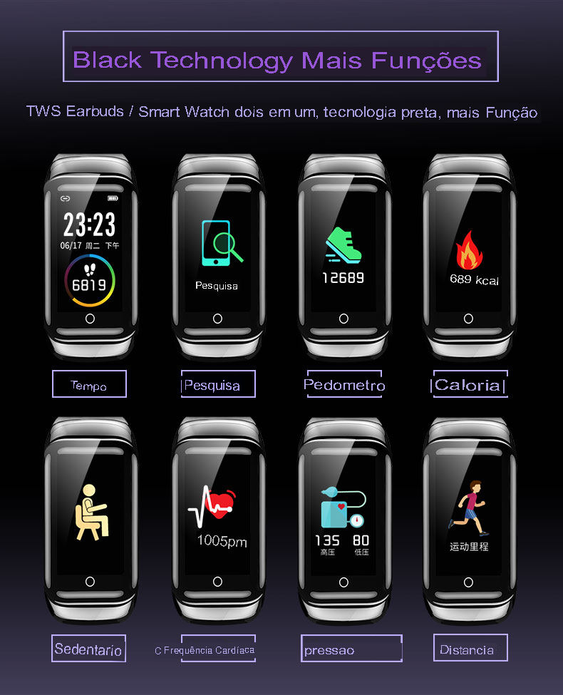 Tipo de produto inteligente; fone de ouvido Bluetooth com pulseira inteligente
