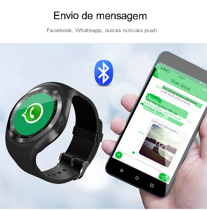 Relógio inteligente Y1 redondo compatível com Nano SIM e cartão TF com Bluetooth 3.0 masculino e feminino smartwatch empresarial para Android e IOS Android
